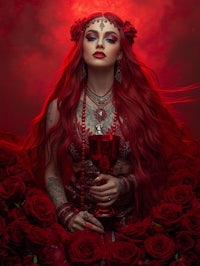 She is the Supreme Divine Feminine, the sexual sovereign and the earthly Scarlet Woman—her blood is the root and rain, her touch the velvet darkness between stars. She is chalice and serpent, both the shadow and the dawn, the flame that renders me boundless. Each rite, each lover, each rebellion against shame—she is there, licking the altar clean, crowning me in roses and thorns. To embody her is to drink deep of cosmic desire and mystical whoredom. Babalon is not just goddess to me; she is magick’s fiery pulse, the lover ever rising behind my eyes..