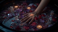 And then, the bath ritualsâoh, what alchemy! Flowers drifting, oils slick on my skin, crystals lining the watery edge. Here, I release every worry, watching them swirl away as the herbs and water kiss my flesh. The bath is my temple. I emerge not only cleansed but rebornâtingling, electric, wild with intention. đ